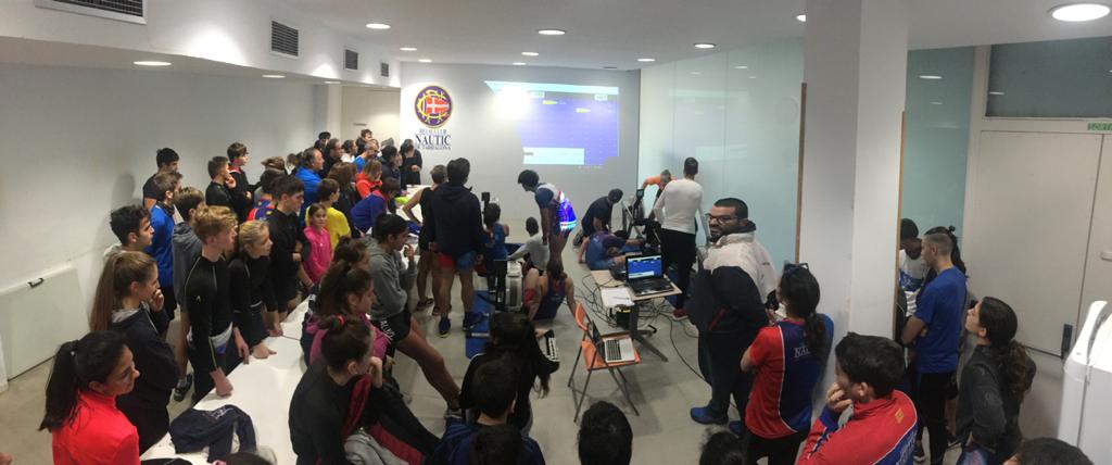 Prop d’un centenar de remers de totes les modalitats que es realitzen al club, s’han congregat avui a les instal·lacions del club del port esportiu per participar en el pentatló de nadal.
